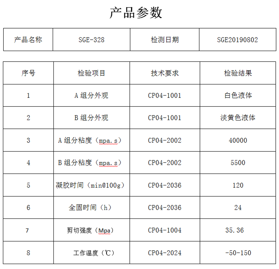SGE-328使用方法,涂胶前一定把零件表面的油污杂质清理干净,避免影响胶液的粘接力。配比:A:B=2:1,用多少配比多少,涂胶的活动时间2小时,2小时候后就开始固化,完全固化是24小时。